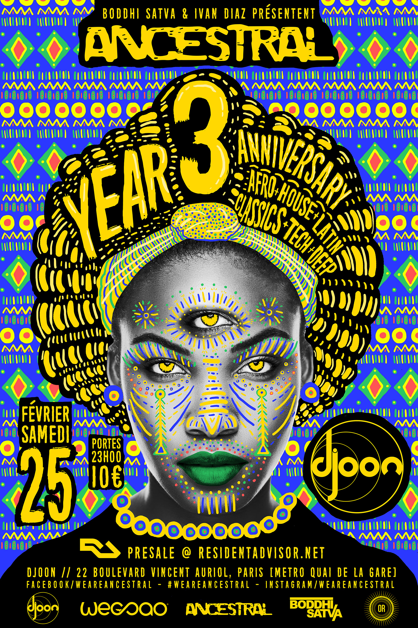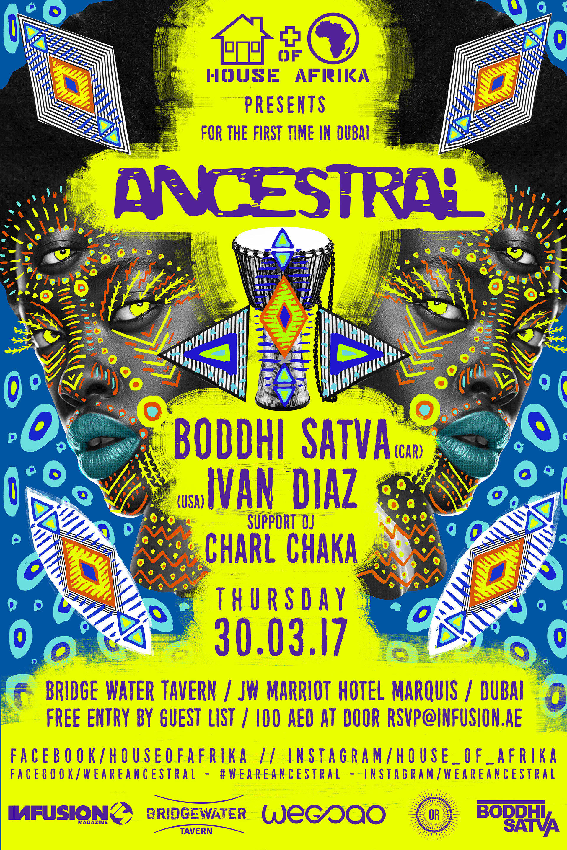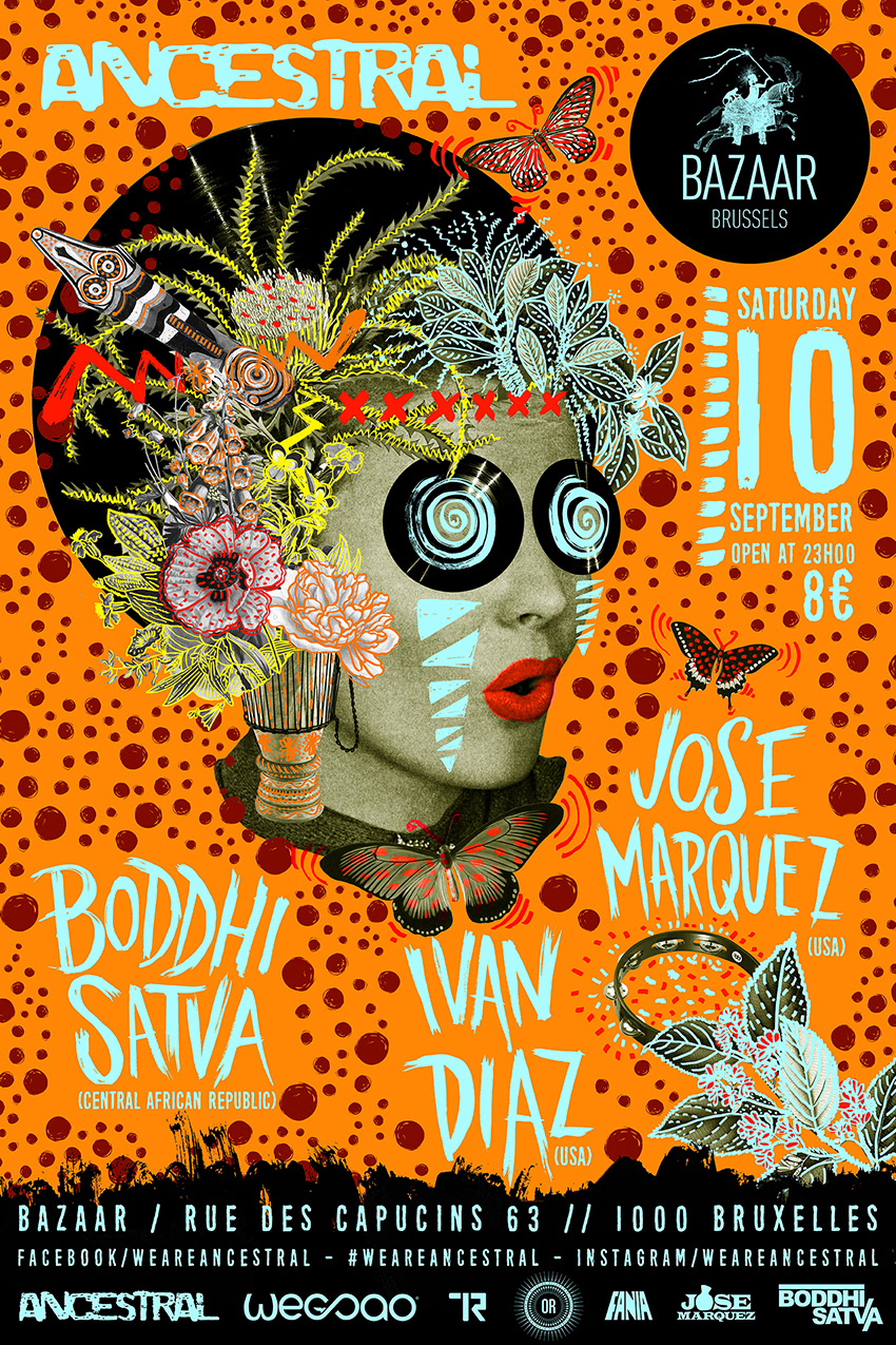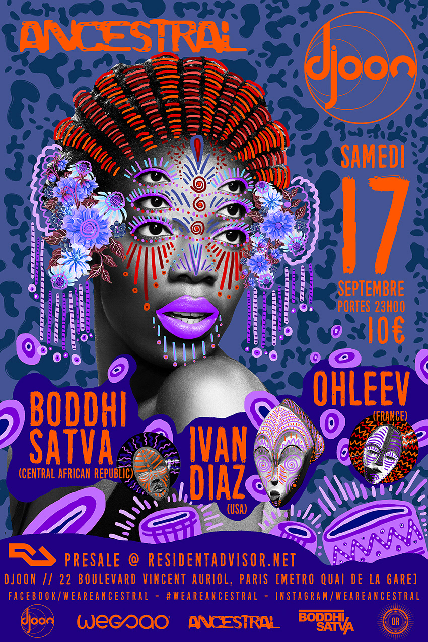 Digital artwork created for ANCESTRAL a conceptual event that has been influenced by the sound, Ancestral Soul. The sound which is being made famous by renown DJ/ Producer Boddhi Satva Official. ANCESTRAL is where deep house music has a Congolese rumba as wife, West African voices as mistresses, and urban R&B and Afro-Cuban rhythms as occasional girlfriends. ANCESTRAL is an ode to the ritual dimension and the spiritual power of music.