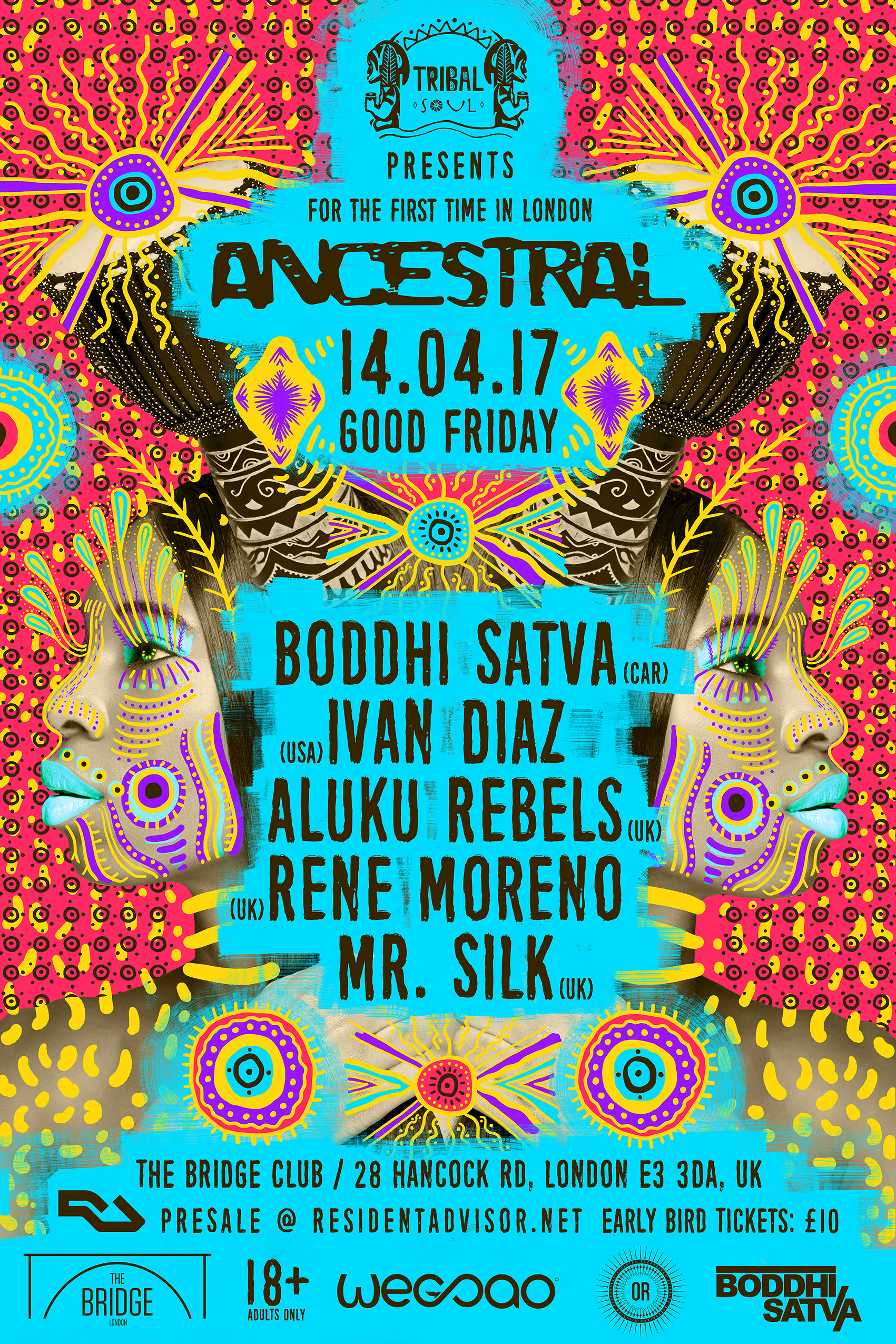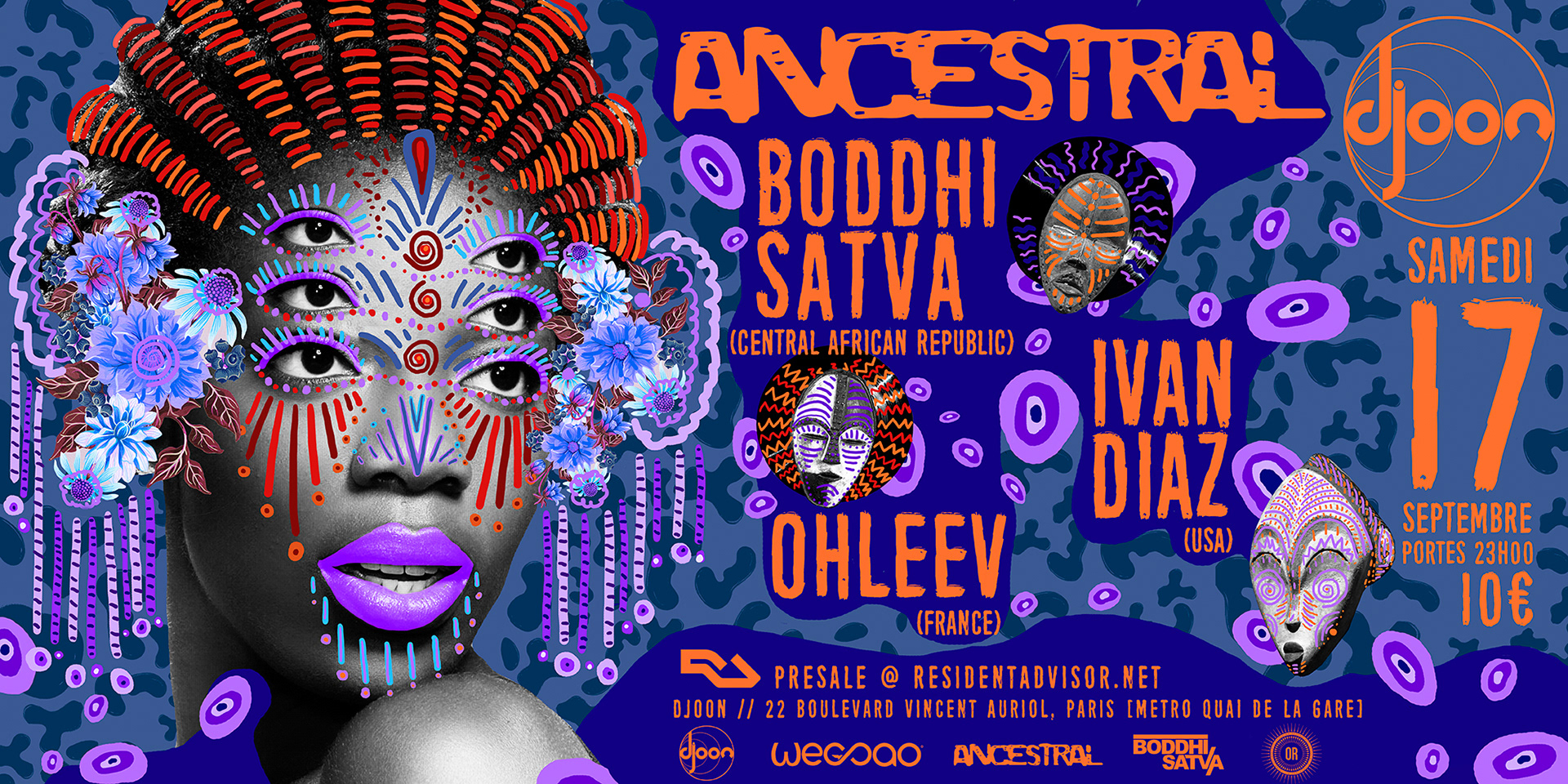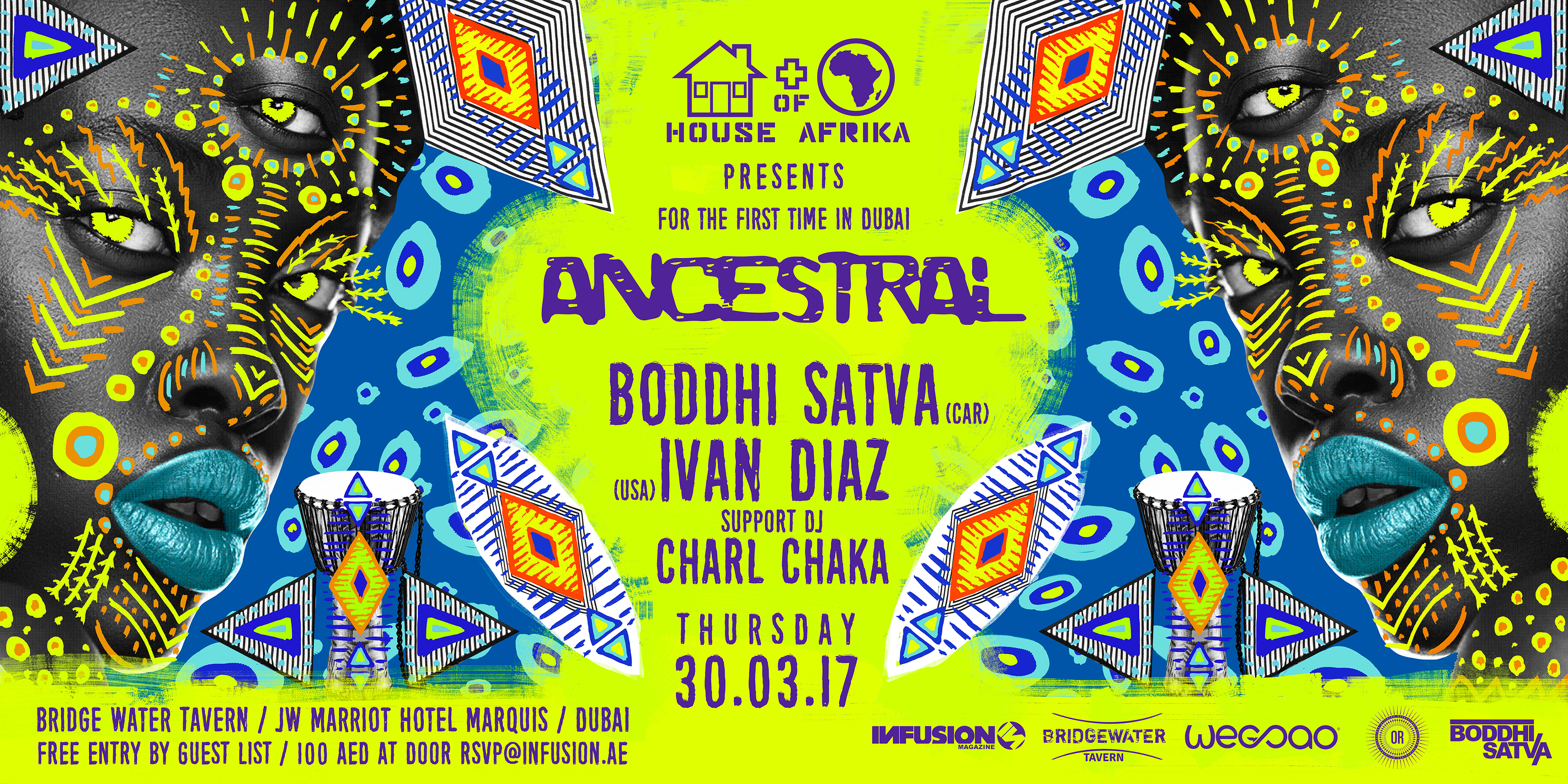 Digital artwork created for ANCESTRAL a conceptual event that has been influenced by the sound, Ancestral Soul. The sound which is being made famous by renown DJ/ Producer Boddhi Satva Official. ANCESTRAL is where deep house music has a Congolese rumba as wife, West African voices as mistresses, and urban R&B and Afro-Cuban rhythms as occasional girlfriends. ANCESTRAL is an ode to the ritual dimension and the spiritual power of music.