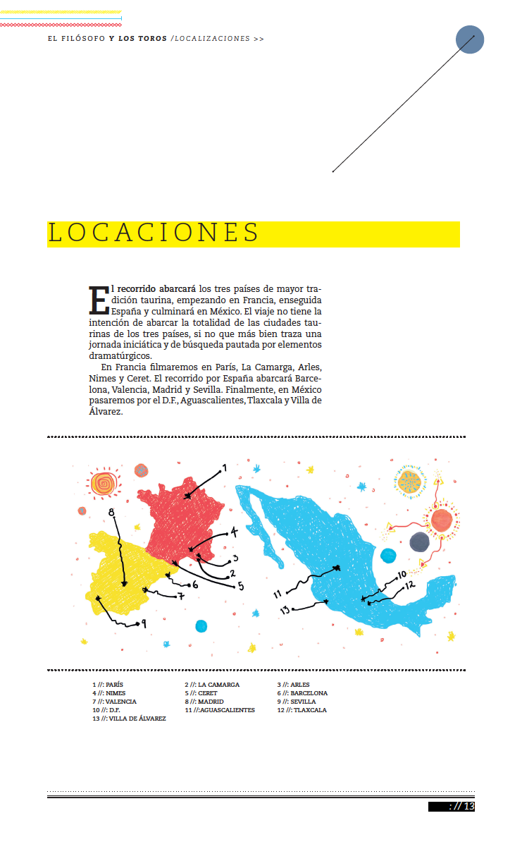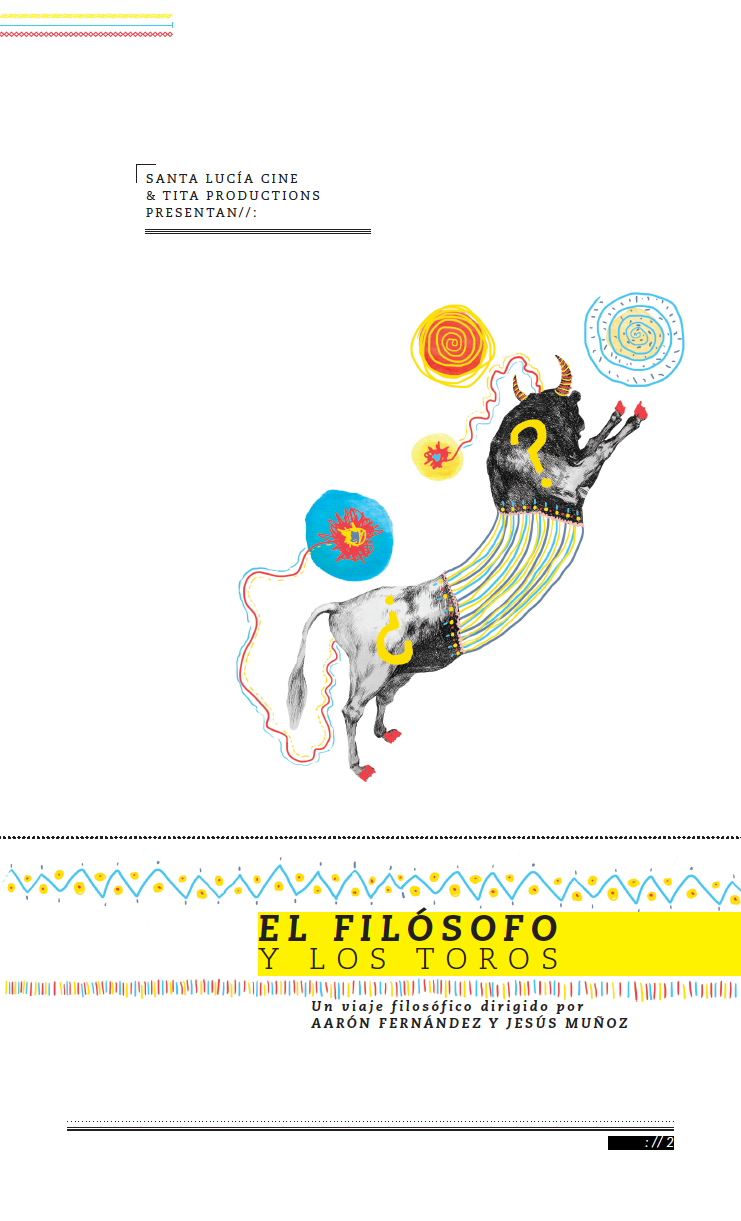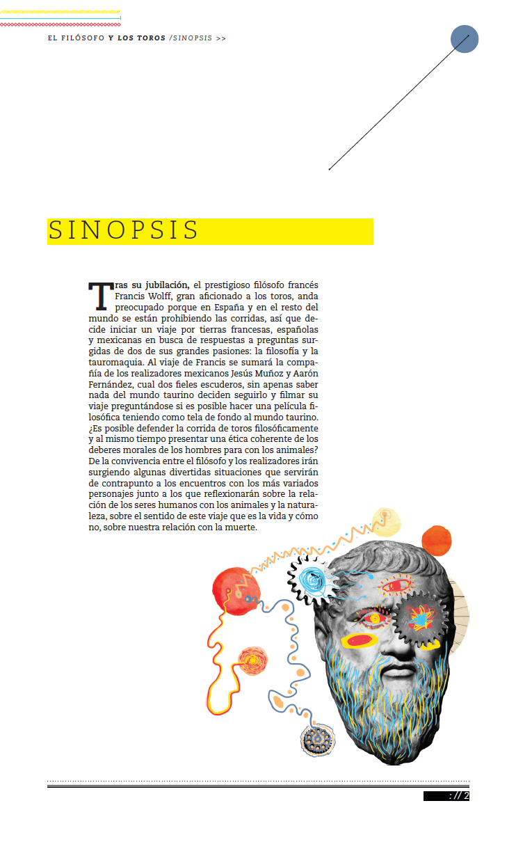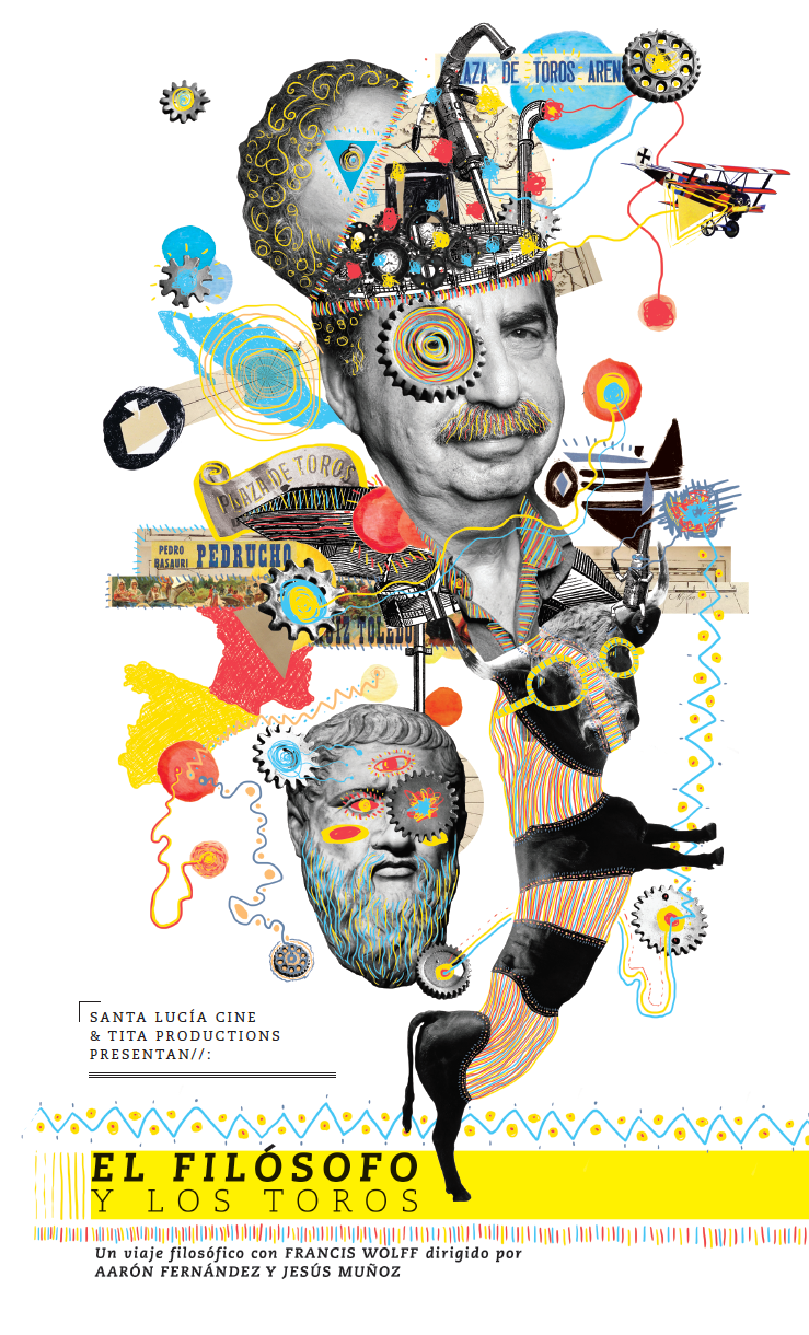 Collage ilustration and design for presentation, printed brochure and folder for the documentary film The Philosopher and the Bulls, a philosophical trip with Francis Wolff , directed by Aaron Fernández and Jesús Muñoz.