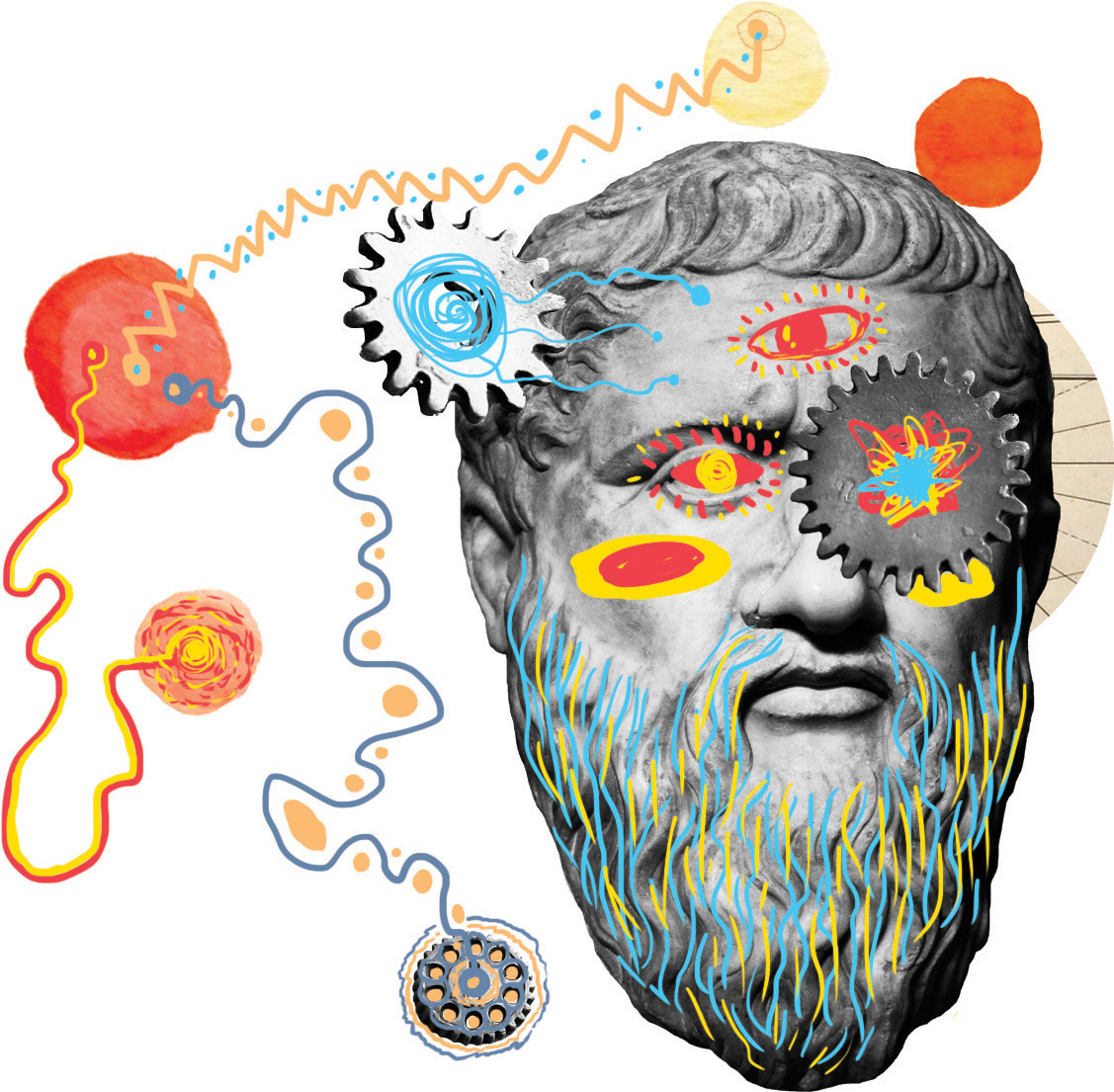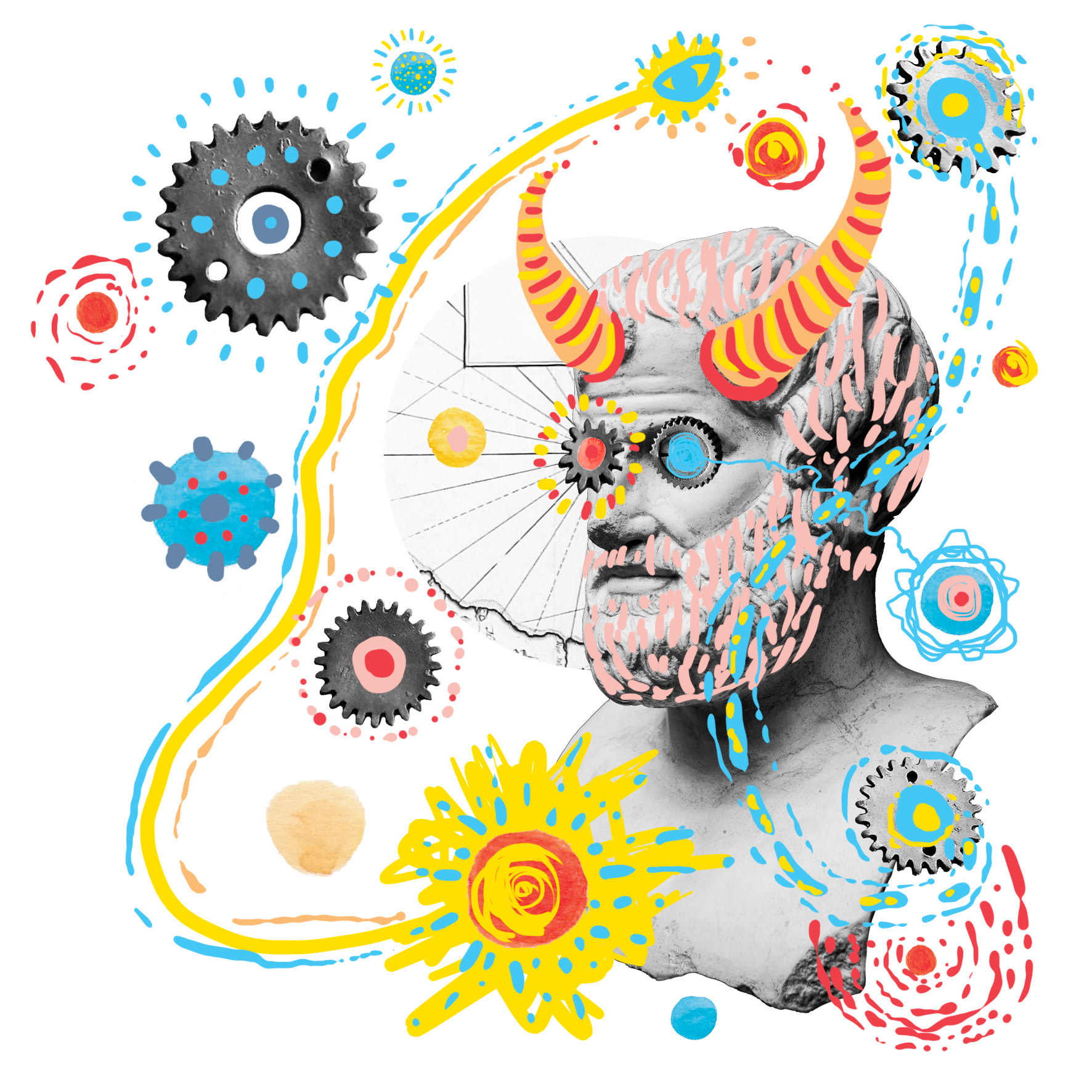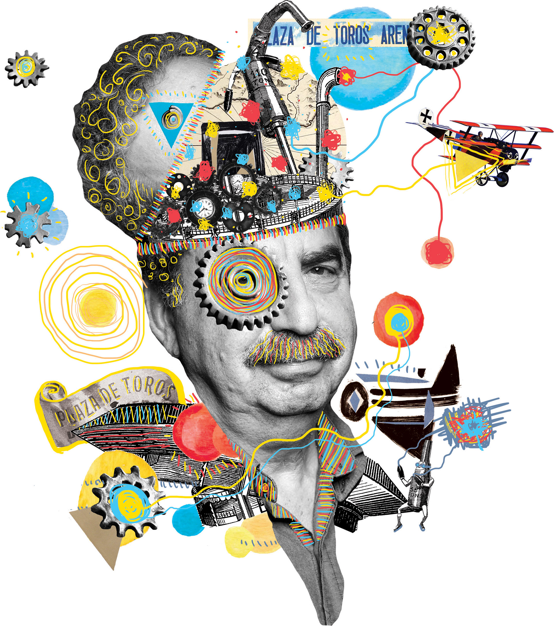 Collage ilustration and design for presentation, printed brochure and folder for the documentary film The Philosopher and the Bulls, a philosophical trip with Francis Wolff , directed by Aaron Fernández and Jesús Muñoz.