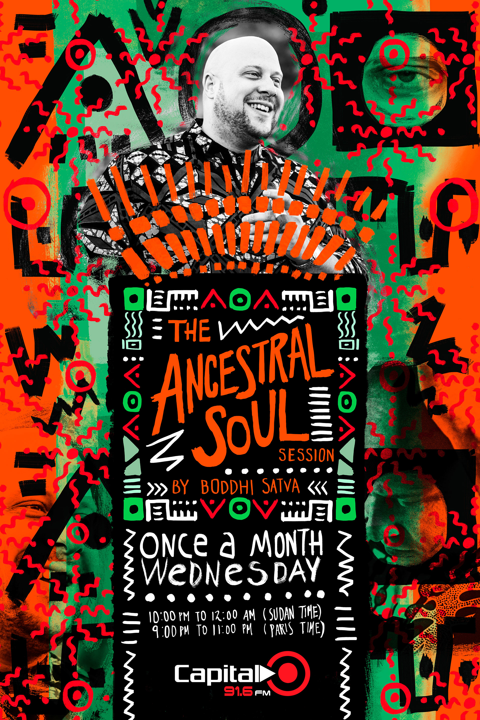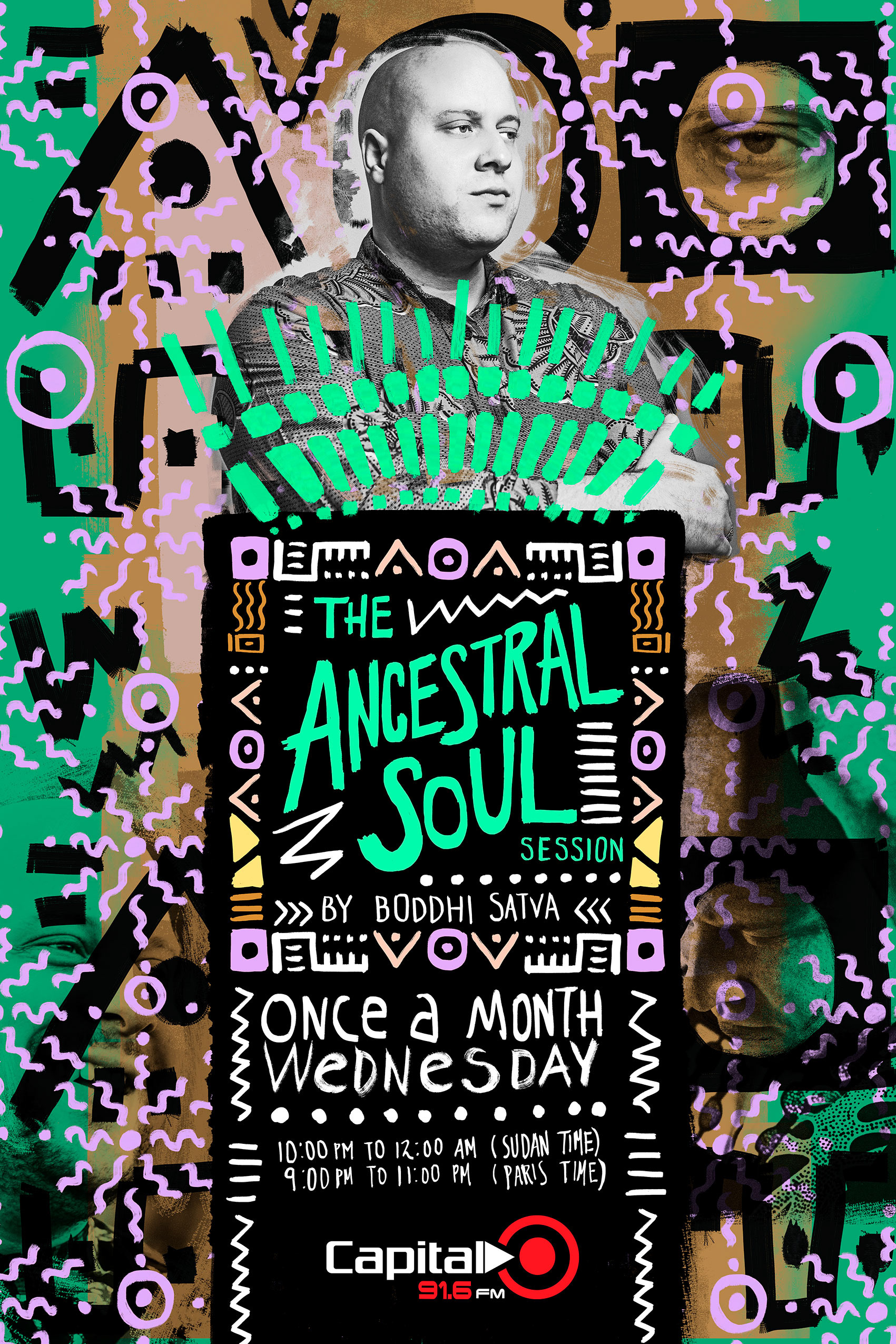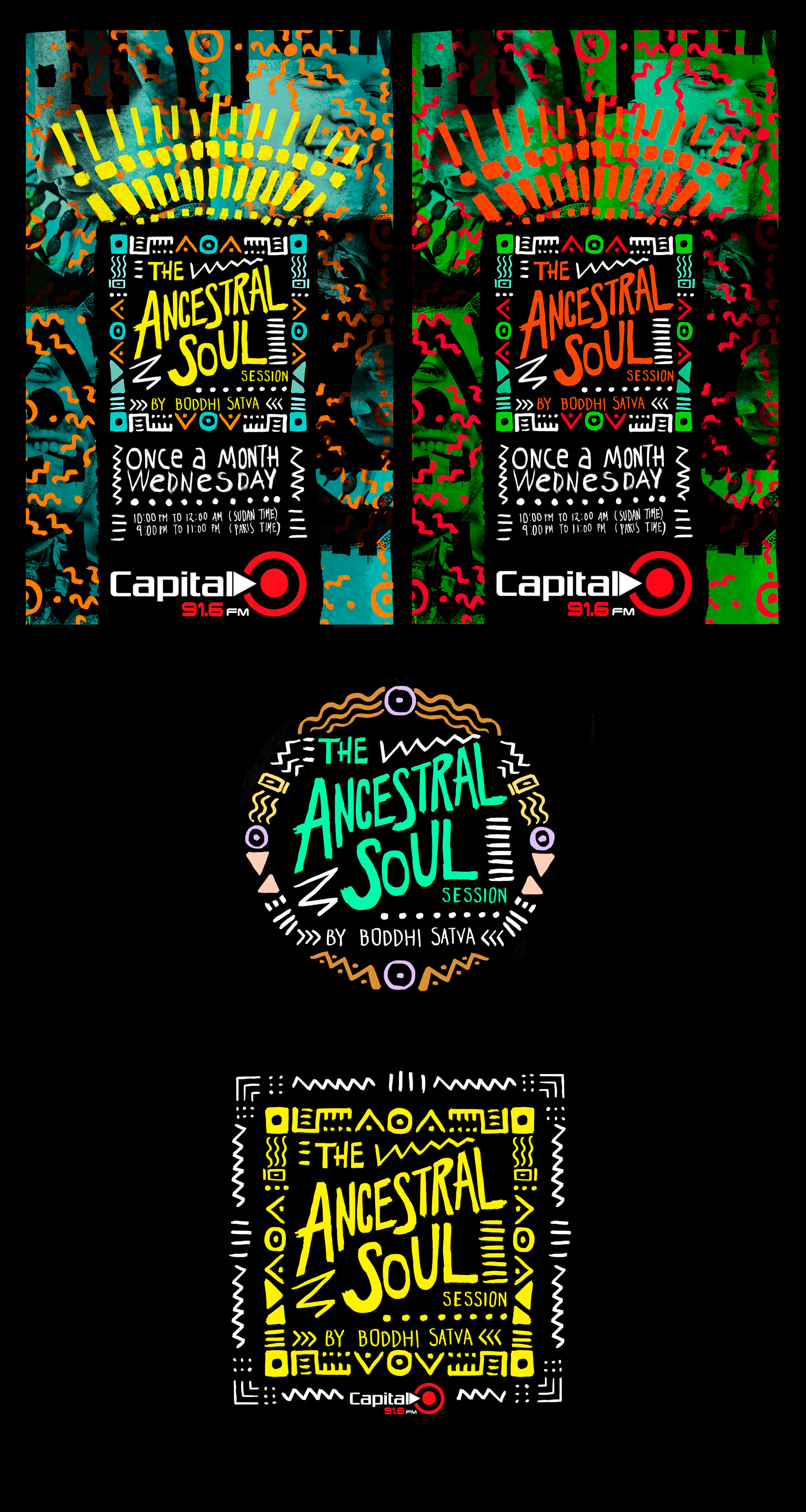 Promos design for THE ANCESTRAL SOUL SESSION, a monthly radio show of Boddhi Satva on Capital Radio / Sudan